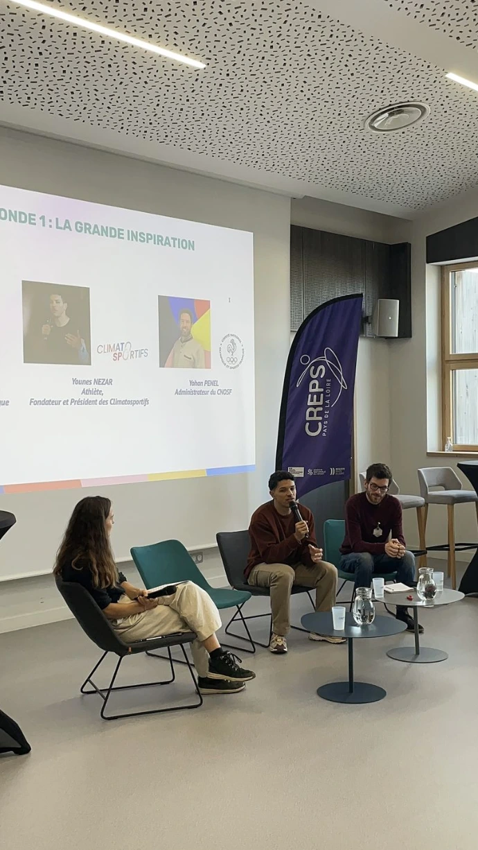 L'atelier consistait en la présentation et la rencontre, pour les participants, de différents porteurs de projets alliant sport et éco-responsabilité.